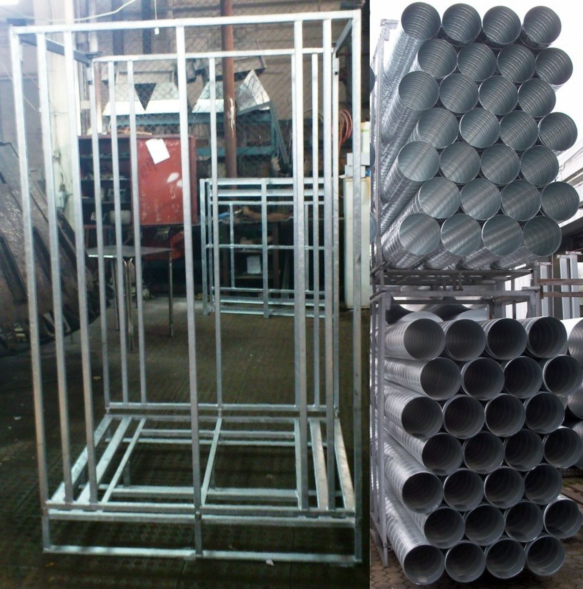 Konstruktion aus Rechteckrohr, Bodenpalette aus Profilrohr, 2 steckbare Seitenteile aus Profilrohr, verbunden mit 2 steckbaren Traversen