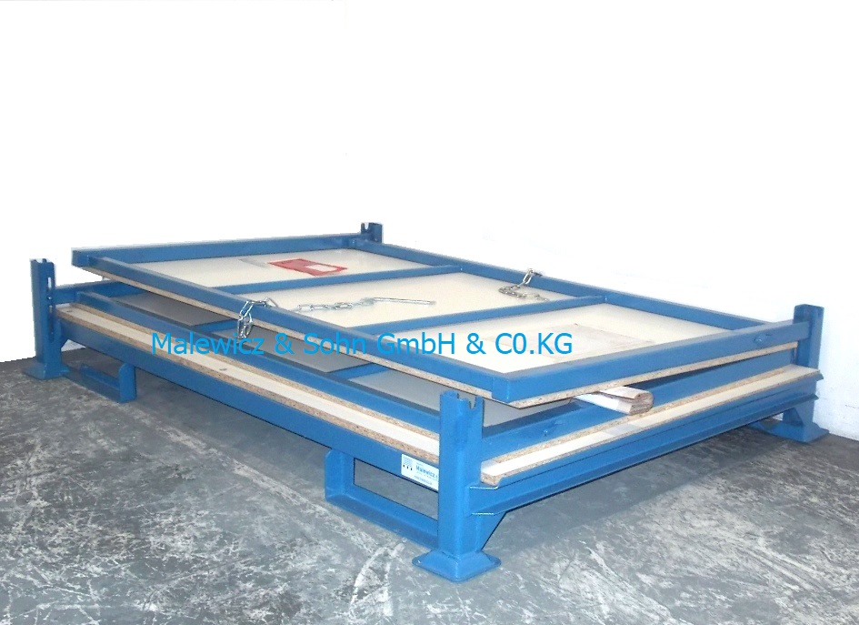 Im Leerzustand ist das Transportgestell platzsparend zusammenfaltbar und stapelbar.