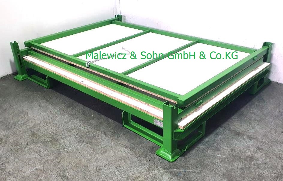 Standard Textilbehälter basierend auf einer Rechteckrohrkonstruktion, der Boden und die Langseiten sind mit beschichteten Spanplatten ausgekleidet.